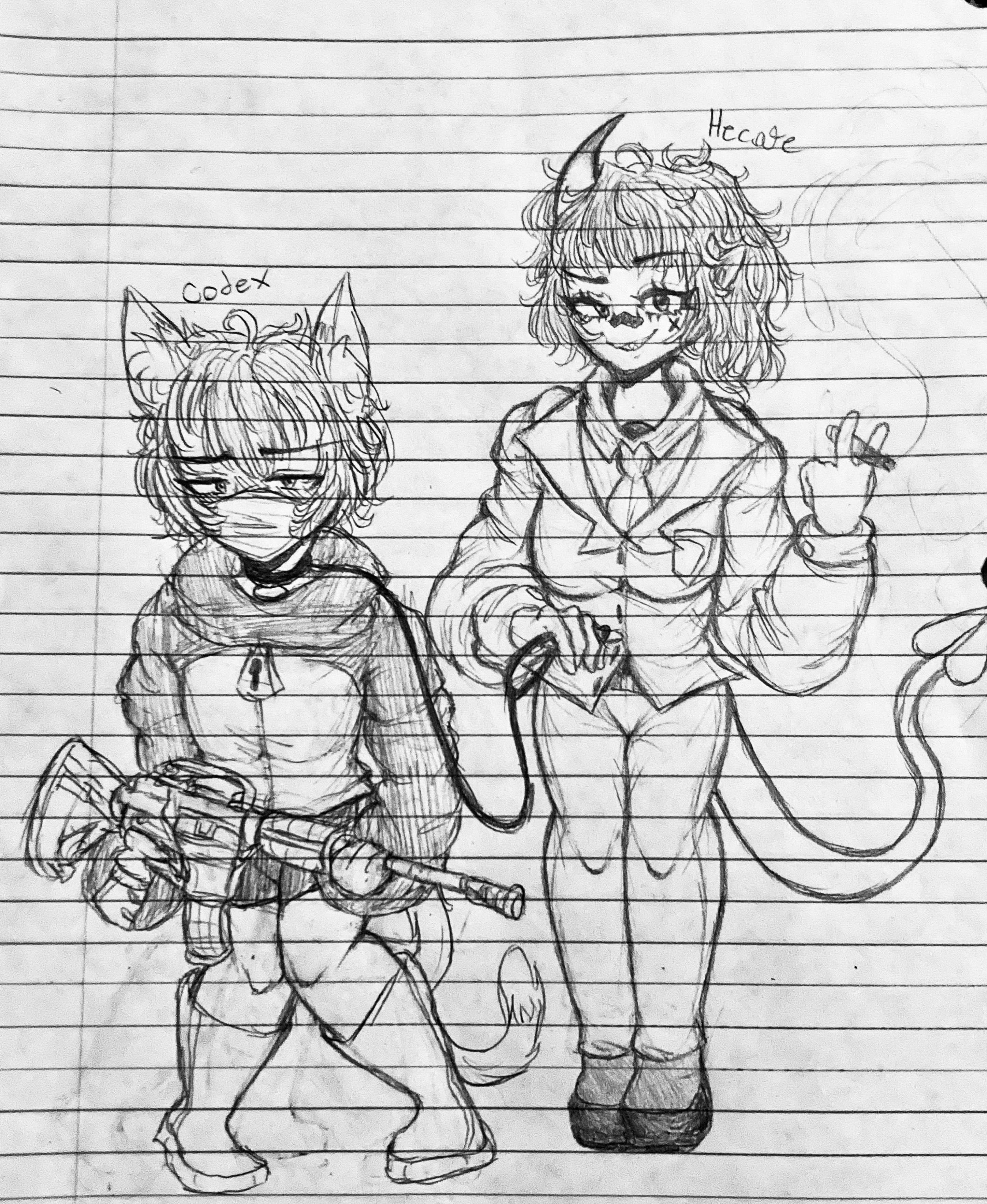 hestia (she used to be name hacate) and codex (codex does not exist anymore i sent him to superhell)