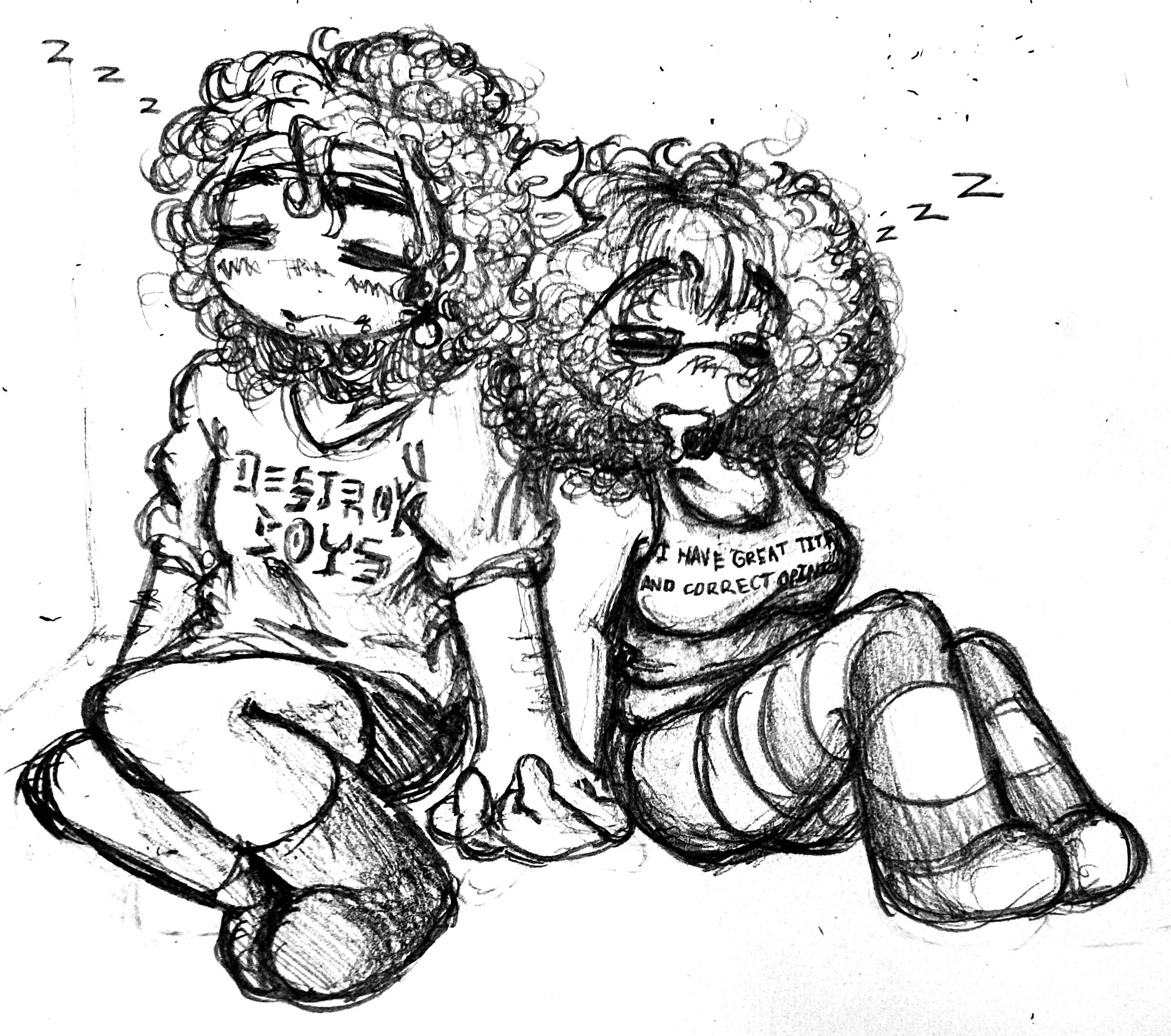 sketch of my friend and their partner's V and Uzi sonas (commissioned by them)